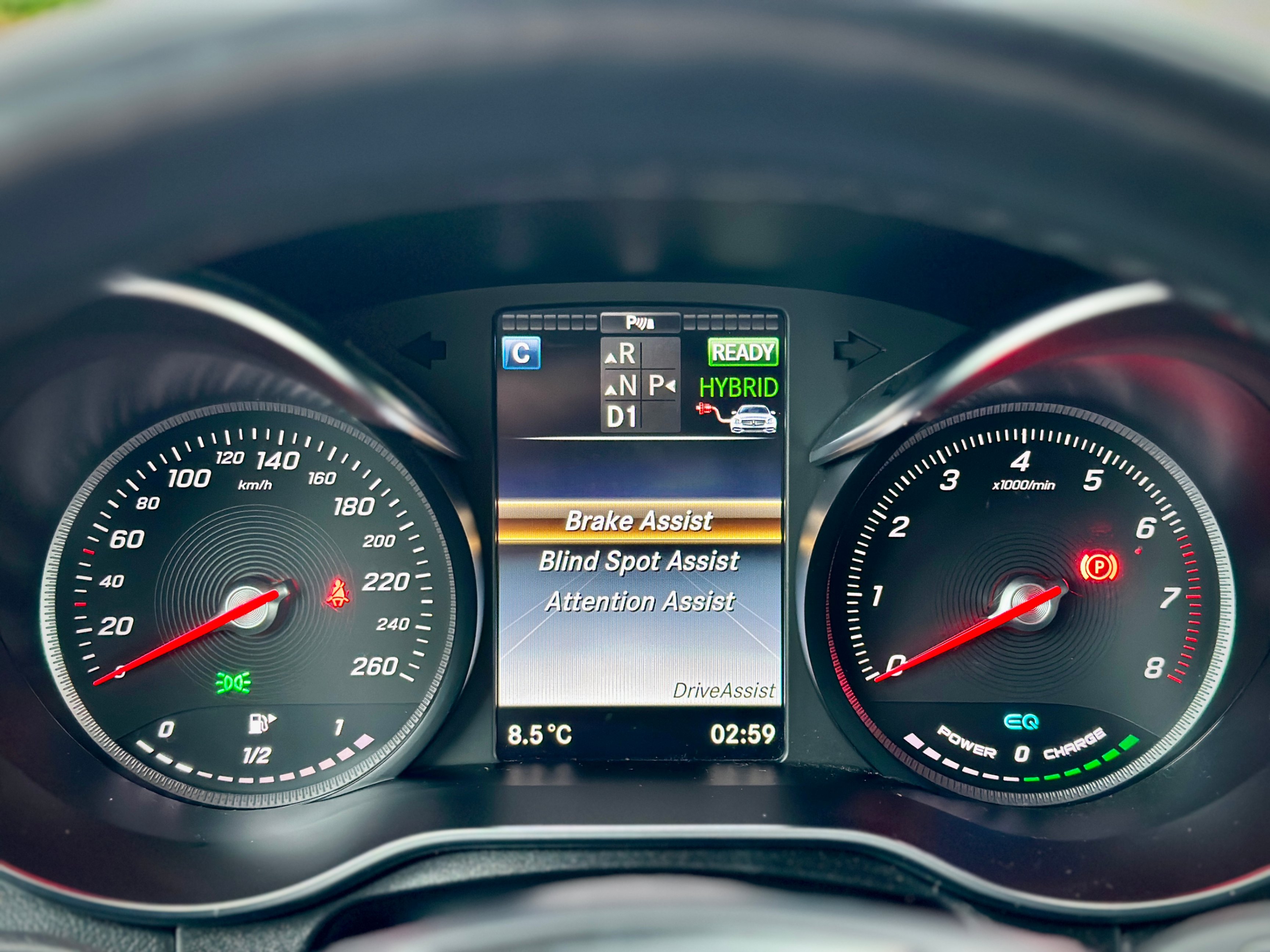 315hp 2.0T + 7AT combined with 8.8kWh battery, 4MATIC, full charged range 33km. Fully EV for city and hybrid for long distance trip! Premium pkg + Premium Plus pkg, Sport pkg. Heated front seats and heated power steering wheel, Navi, Bluetooth, Burmester surround audio, surround view camera, panoramic sunroof, LED headlights, brake assist, blind spot monitor, etc.
