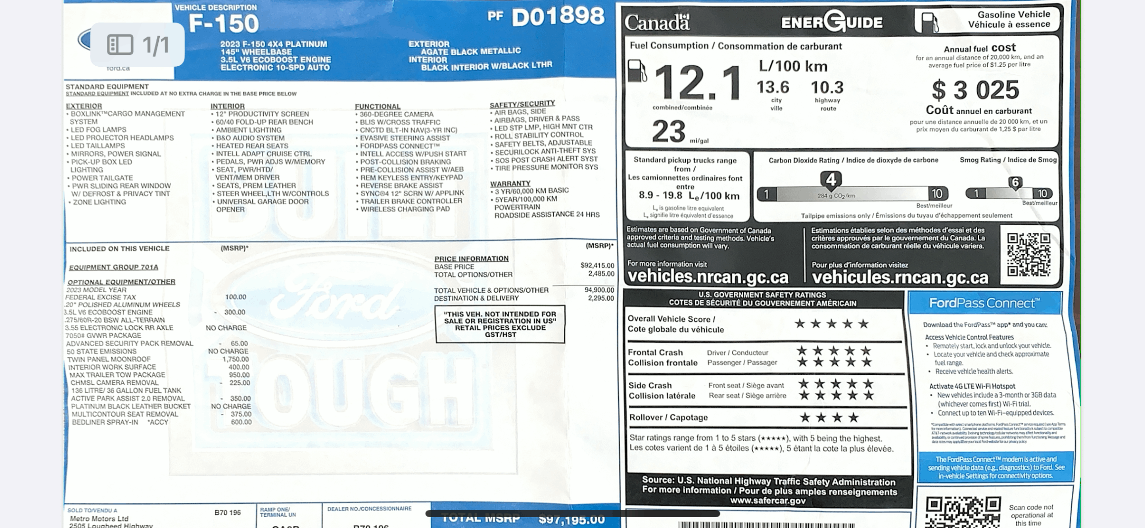 2023 FORD F-150 Platinum 4WD SuperCrew 5.5' Box