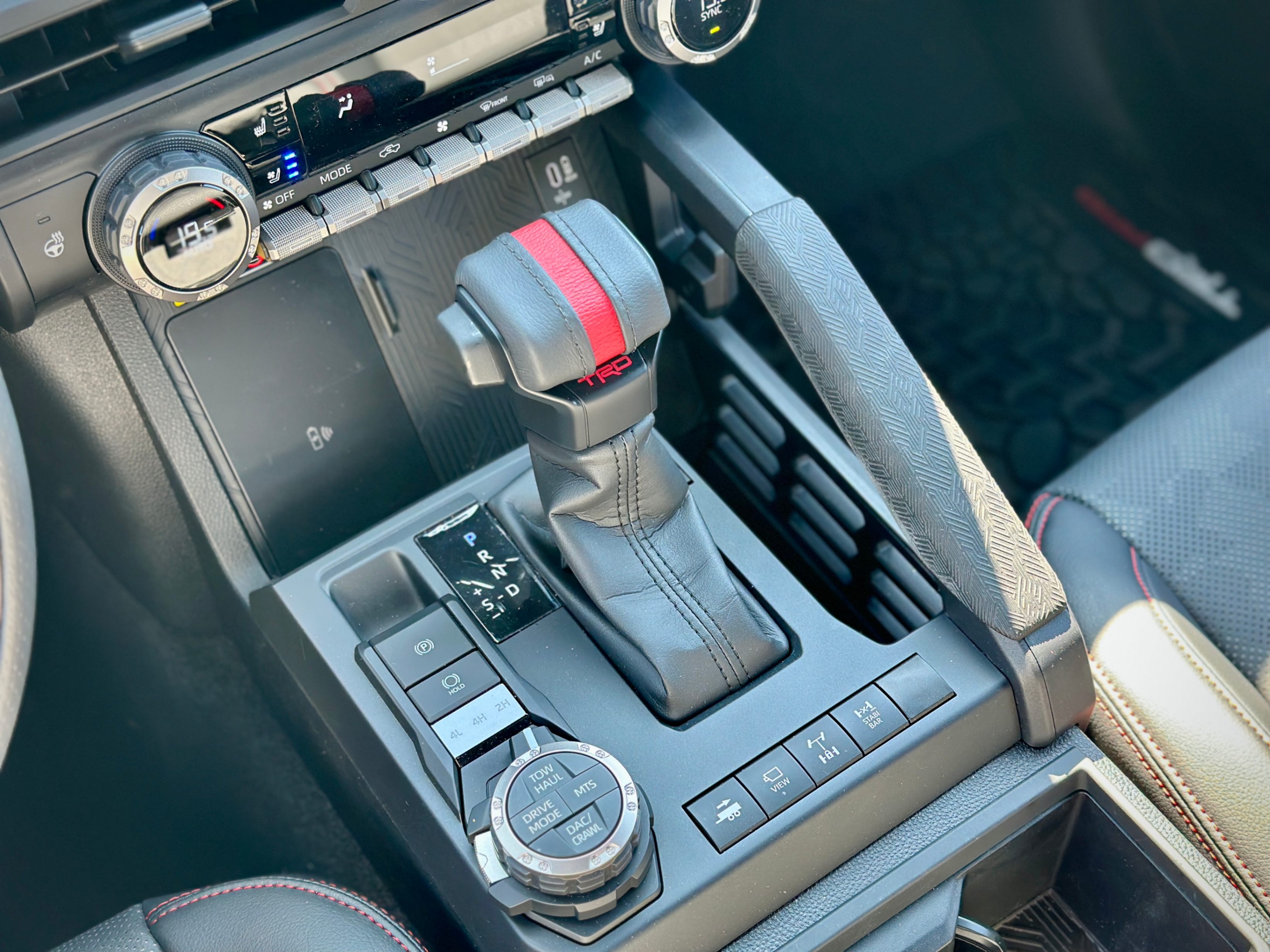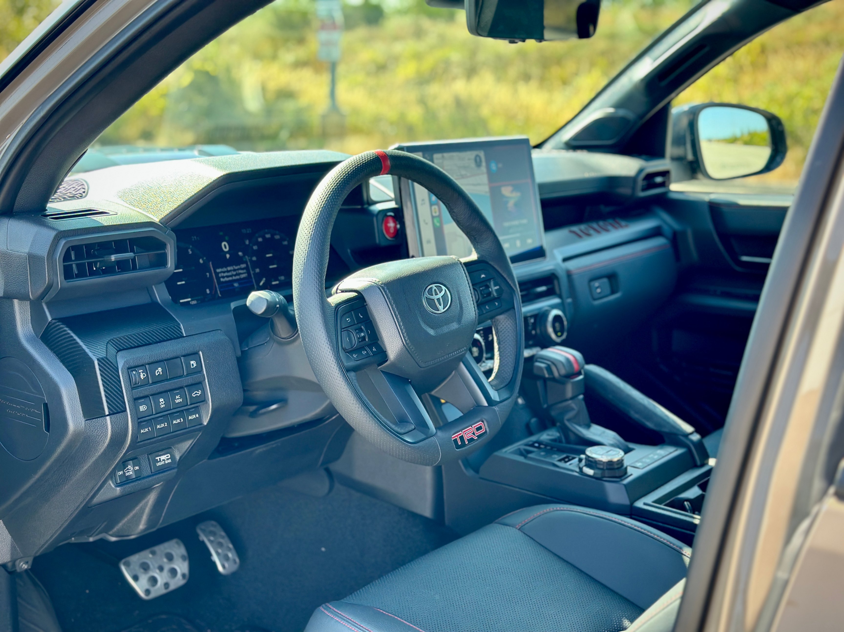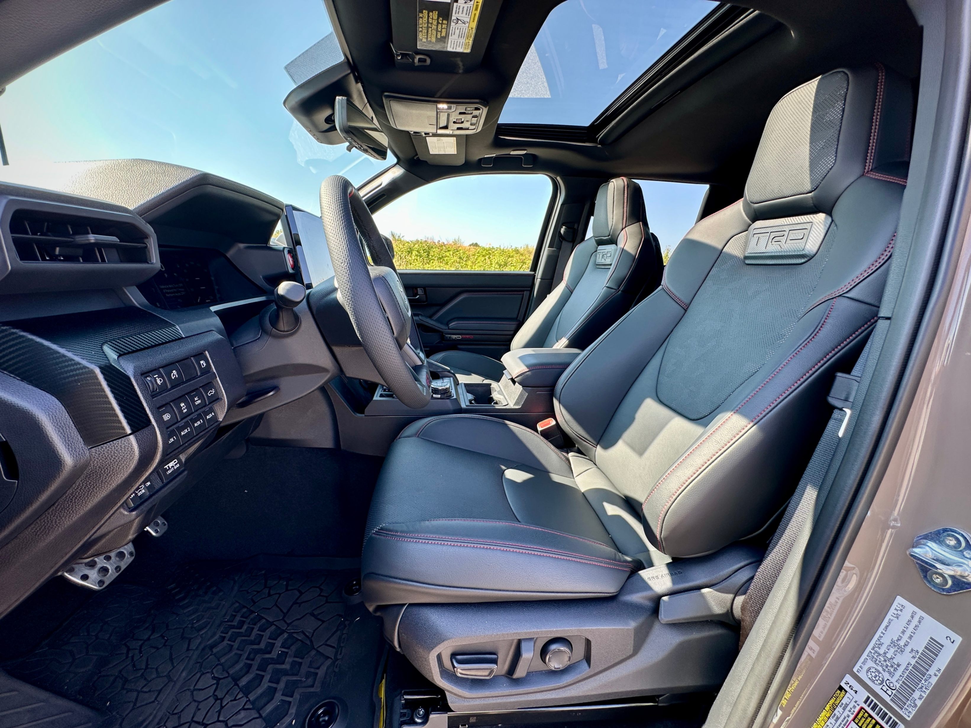 i-FORCE MAX 2.4L Turbo L4 Hybrid Powertrain with 326 HP, 8AT, part-time AWD, rear differential lock, Front Stabilizer Disconnect Mechanism (SDM), Multi-Terrain Select, Crawl Control (CRAWL), FOX® Shock Absorbers with Quick Switch 3 (3 manually selectable damping settings), TRD Performance Air Intake & Exhaust. Black & Red SofTex leather upholstery, heated and vented front seats and heated steering wheel, IsoDynamic Performance Front Seats. 14" touchscreen, 12.3" Digital Gauge Cluster, Navi, wireless Apple CarPlay and Android Auto, JBL Audio System with Portable Bluetooth Speaker, wireless phone charger, Multi-Terrain Monitor, digital rear view mirror. Full LED headlights, Rigid LED fog lamps, TOYOTA Heritage Front Grille with LED light bar, ARB steel rear bumper with hooks, power tailgates. TOYOTA SAFETY SENSE 3.0, etc.