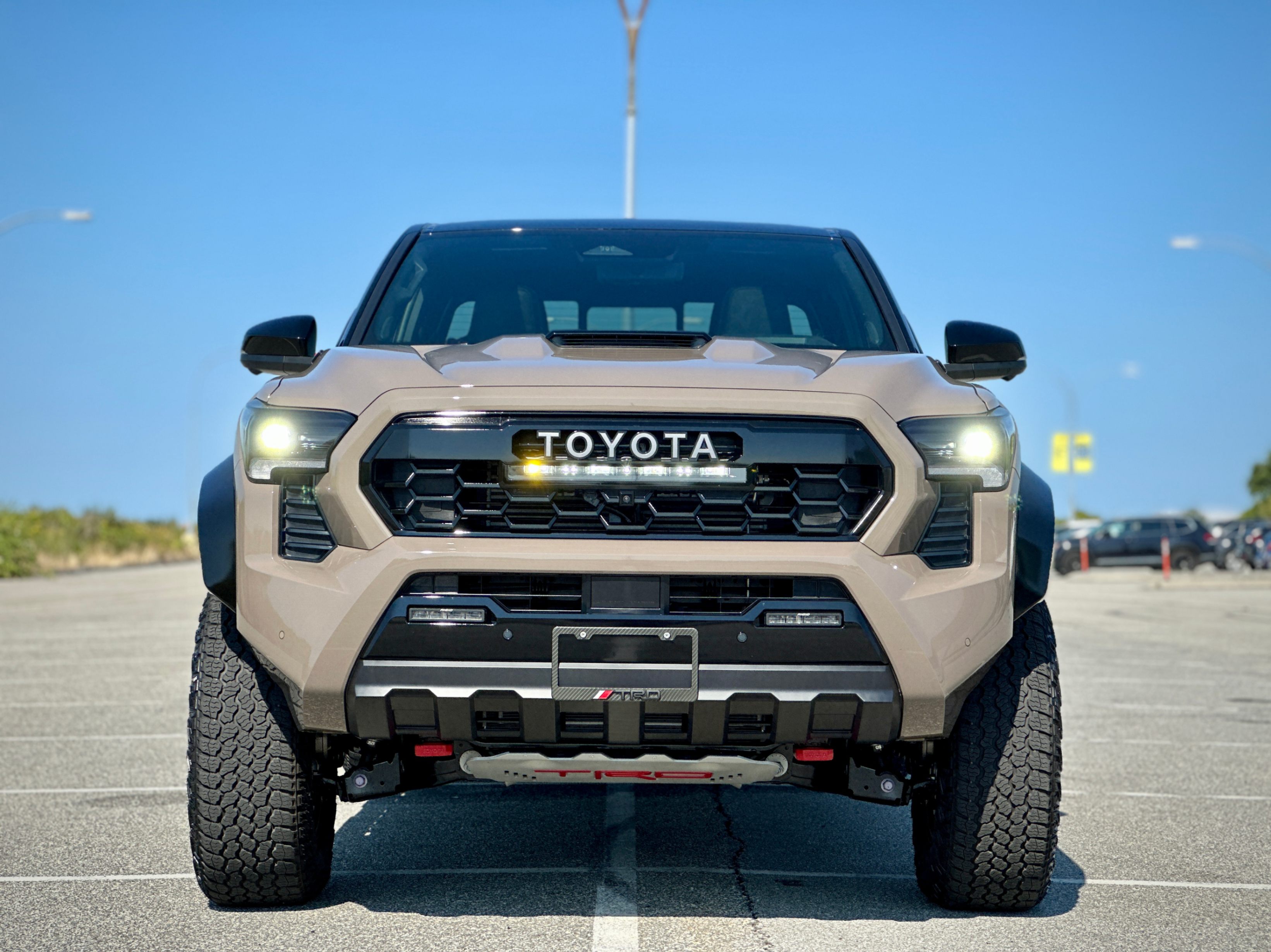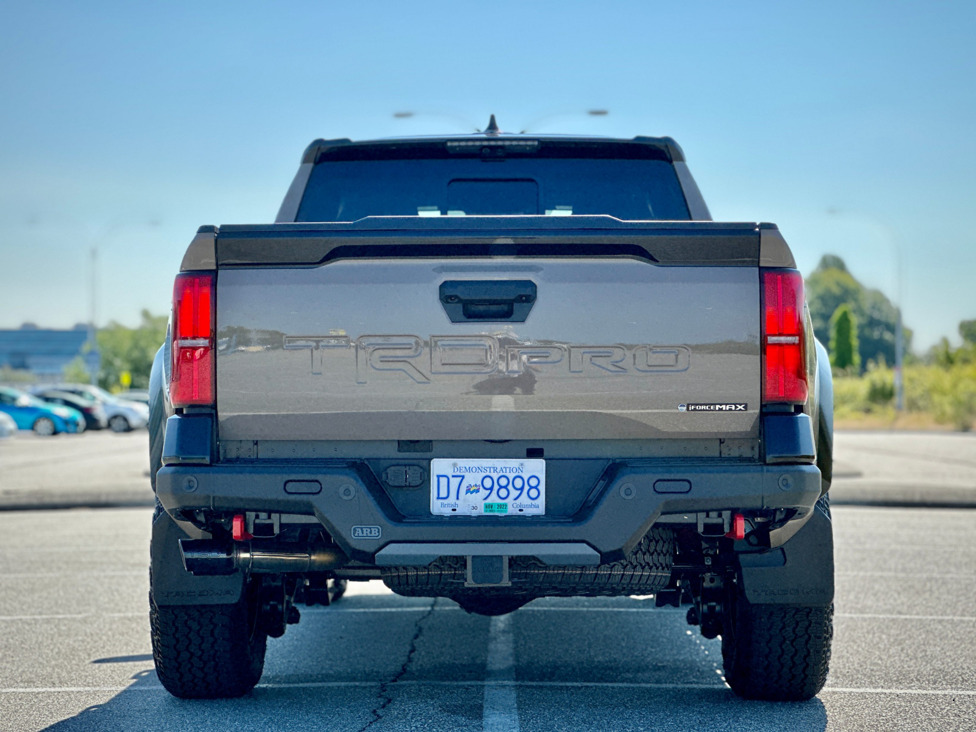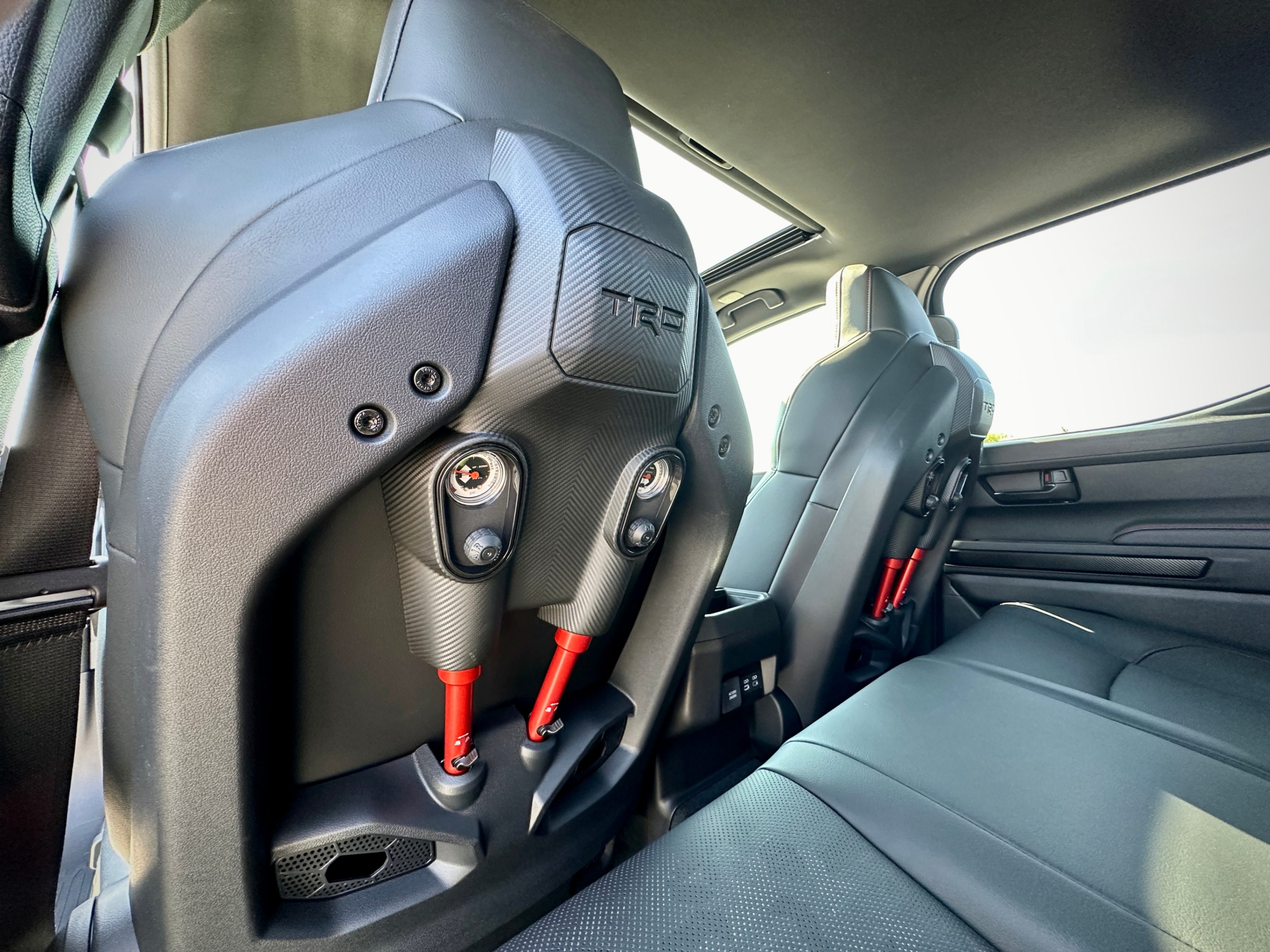 i-FORCE MAX 2.4L Turbo L4 Hybrid Powertrain with 326 HP, 8AT, part-time AWD, rear differential lock, Front Stabilizer Disconnect Mechanism (SDM), Multi-Terrain Select, Crawl Control (CRAWL), FOX® Shock Absorbers with Quick Switch 3 (3 manually selectable damping settings), TRD Performance Air Intake & Exhaust. Black & Red SofTex leather upholstery, heated and vented front seats and heated steering wheel, IsoDynamic Performance Front Seats. 14" touchscreen, 12.3" Digital Gauge Cluster, Navi, wireless Apple CarPlay and Android Auto, JBL Audio System with Portable Bluetooth Speaker, wireless phone charger, Multi-Terrain Monitor, digital rear view mirror. Full LED headlights, Rigid LED fog lamps, TOYOTA Heritage Front Grille with LED light bar, ARB steel rear bumper with hooks, power tailgates. TOYOTA SAFETY SENSE 3.0, etc.